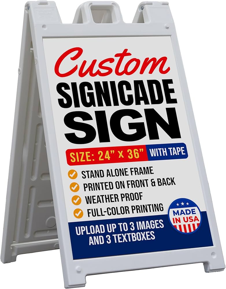 A-Frame & Sidewalk Signs are freestanding an affordable and effective way to attract people to your business. Supremely portable, they can be taken indoors at the end of the day or quickly repositioned at any time as needed.